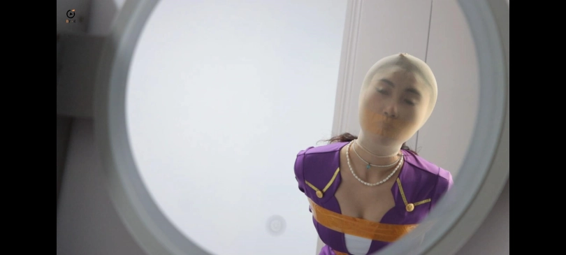 画面一转毒贩已经用黄色胶带将小楠上半身绑了起来(如图),然后让她自己走进了卧室。随后毒贩就锁上了房门。期间,小楠在卧室里来回走动,然后去到卫生间照了下镜子(给特写),五分钟后,毒贩走了进来,对她说:“货没有问题,你可以回去了。”小楠看了看毒贩丝毫没有给自己松绑的意思。随后小楠示意毒贩给自己解开胶带。毒贩不怀好意地笑了笑,说:“怎么?不想走了?”小楠听了疯狂摇头。毒贩说:“既然这样,那就。。”话还没说完,就把小楠抱进了屋内......