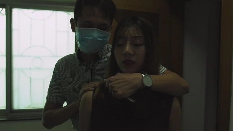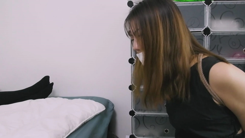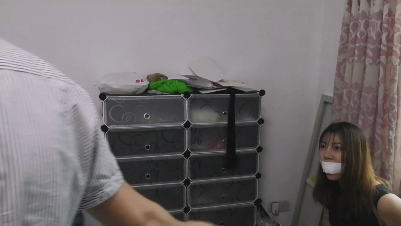 陈凯看见自己给王娜送来的自缚的绳子还有一些就顺手拿过来将张涵的手绑起来。