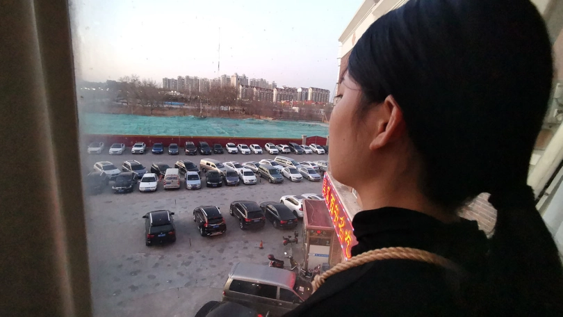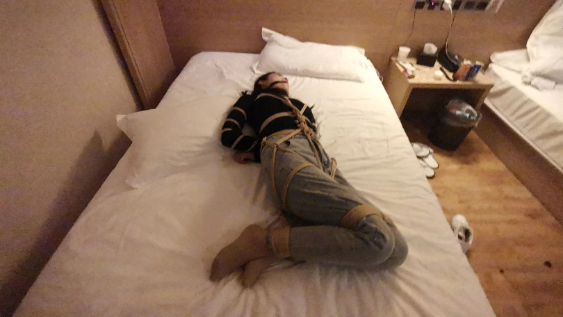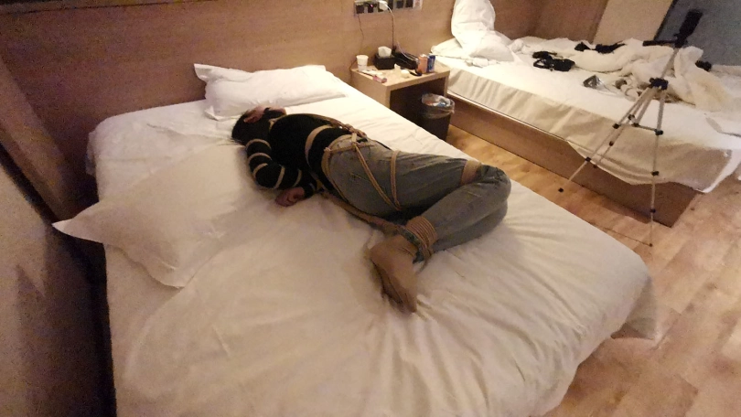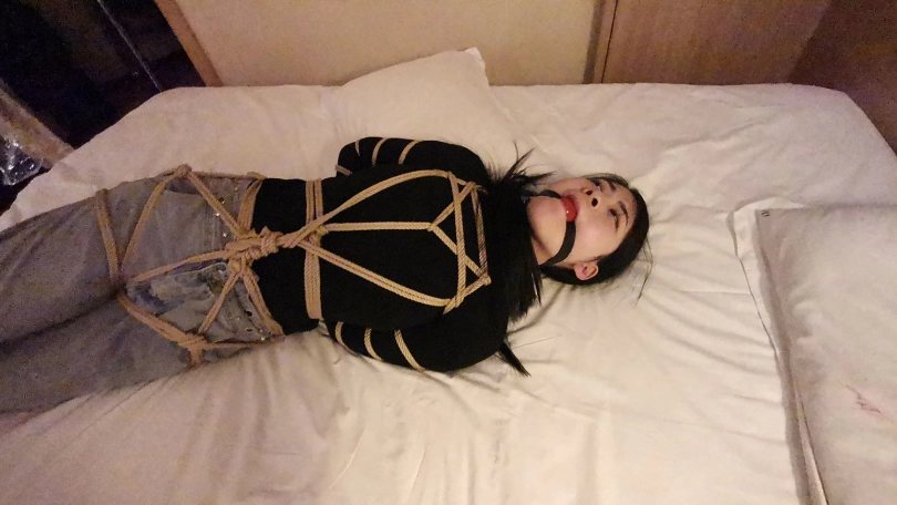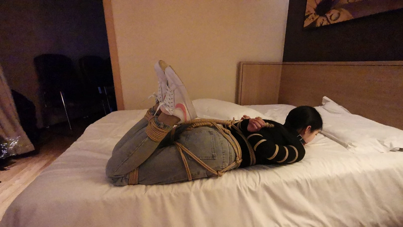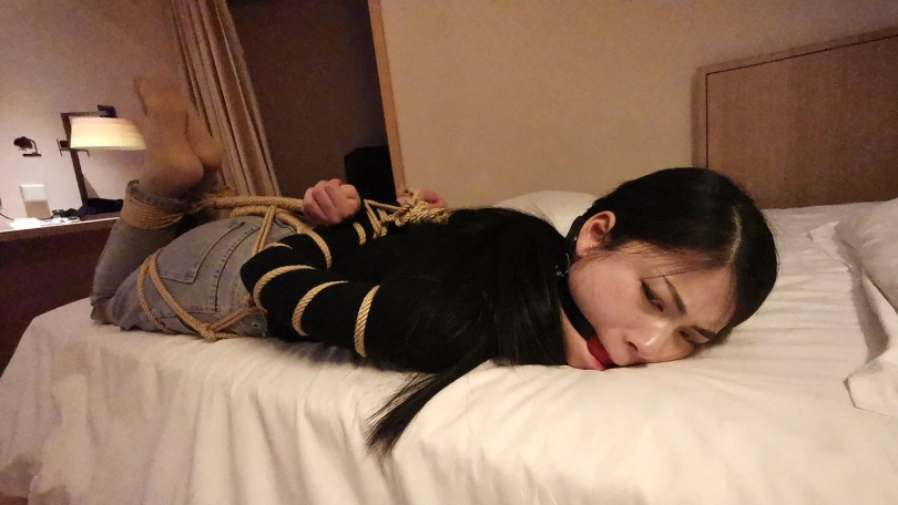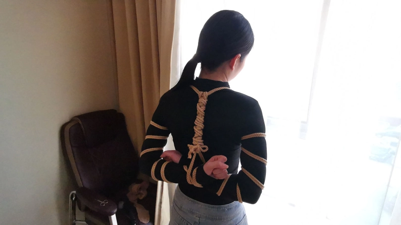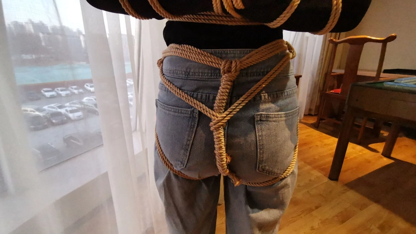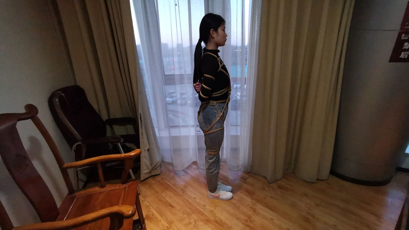 五花大绑后逼迫站在窗台前,正好被楼下的人看到,吓得赶紧躲到窗帘后面,身上密密麻麻用绳子绑着,尤其是屁股上用了不少绳子。放到床上绑上驷马,脱掉鞋子挠痒玩弄丝足。。。