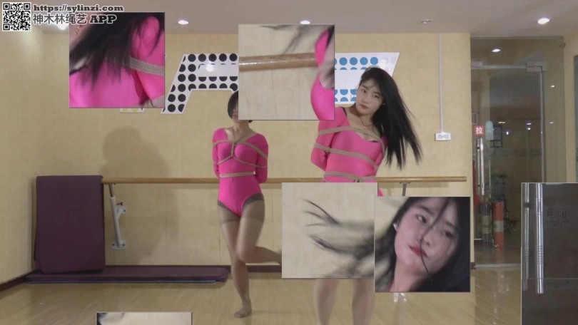 老师:两位美女好好跳啊,我们老板也会来看的。 二女:好。 老师:我们老板,想给你们增加点难度,你们先放松一下。 老板:来换个绑法,再封住嘴巴。 老板:注意用鼻子调节呼吸啊! 老板:跳得不错,休息一下吧!当然,不能用普通的休息方法啦!先来个驷马。 眼睛也用胶带蒙上。看看你们配合能力如何了,多久能逃脱。 舞者1:呼,终于。。。 舞者2:呜呜呜呜(别忘了我)。。。。 舞者1:真想先调戏你一下,可惜没时间了。 老板:行,时间上还说的过去。最后再看看你们不绑手脚,只蒙眼封嘴能做到如何吧。