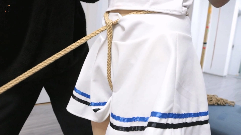 菲儿穿着一身紧身JK水手服来工作室应聘模特,被双手折叠在身后绑了起来,就像多了两个小翅膀一样,驷马放置在地上,用大口球堵嘴流了一地的口水,之后被绳师用牙刷挠脚心,进行模特的耐痒度测试。