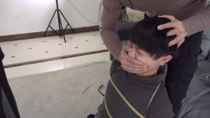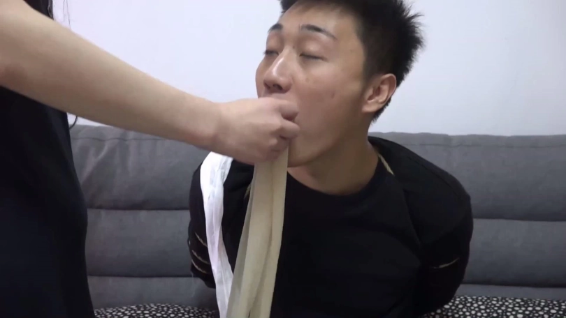 片段2:美女文冰下班回家被入室歹徒捂嘴劫持,被迫脱掉穿的原味肉色连裤丝袜塞男朋友嘴里,被捆绑后歹徒很恶趣味用文冰男友脚上穿的原味黑色棉袜塞她嘴里,再用黑胶布封嘴,情侣二人互相抱怨试着解绳子反被歹徒发现,不仅捆成驷马还被用红色胶带与肉色自粘绷带来回缠绕多圈封嘴。(PS:有一段没有声音,工作室做后期时没做好)