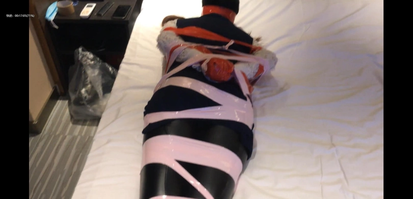 上下两集,本集为黑色连袜皮裤胶带缠绕挣扎加挠脚心,下集为麻袋和黑塑料袋包裹挣扎摸小jio。