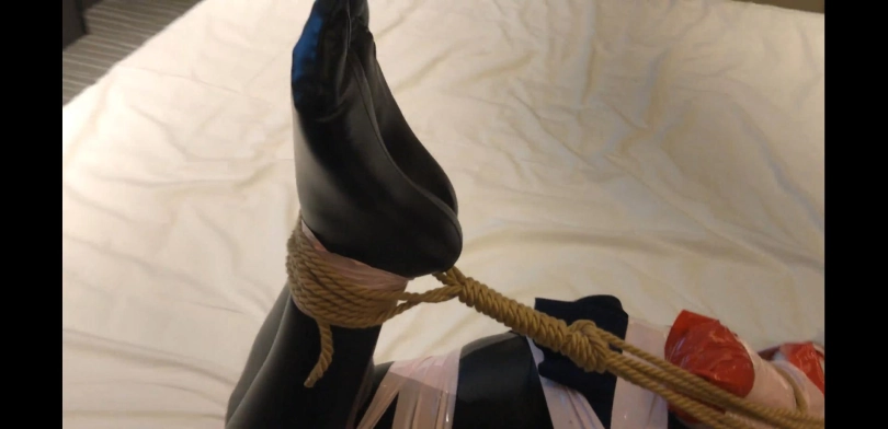 168的身高,黑色连袜皮裤长腿,本人也不是很会绳艺,只是为了体现最真实的挣扎。