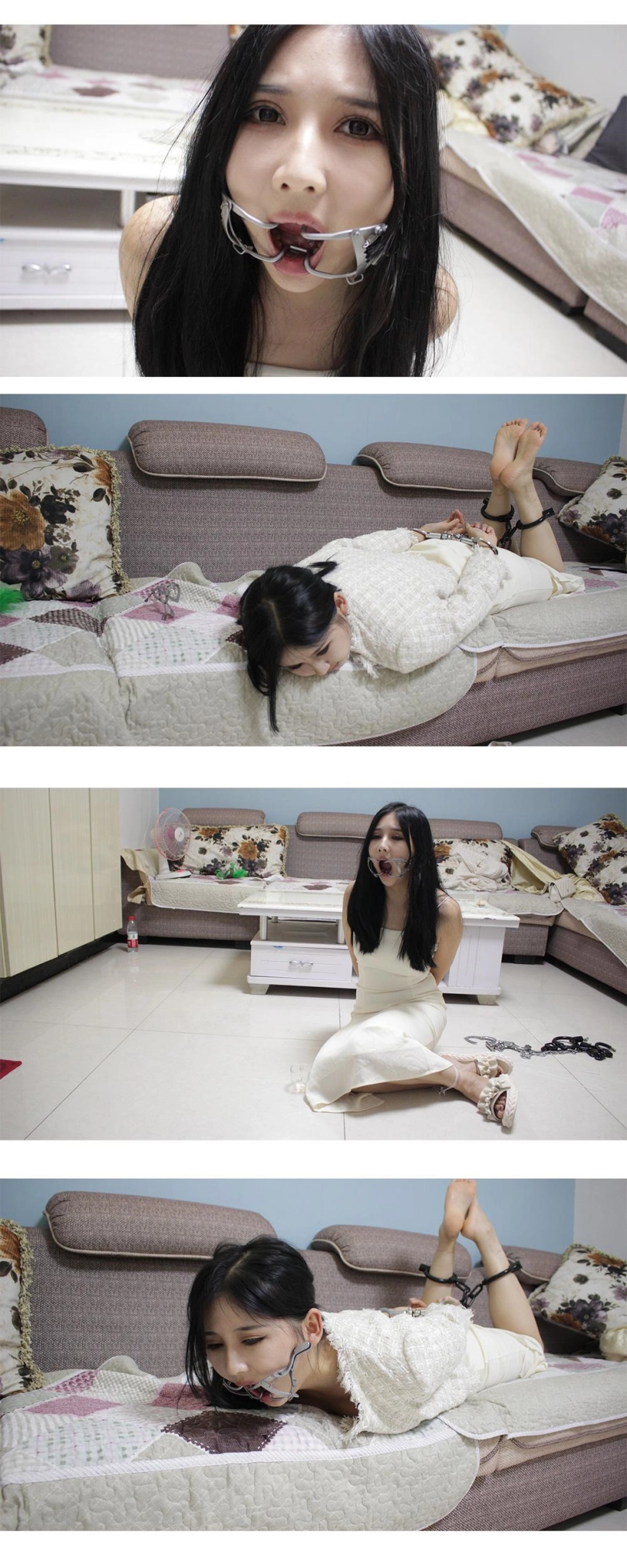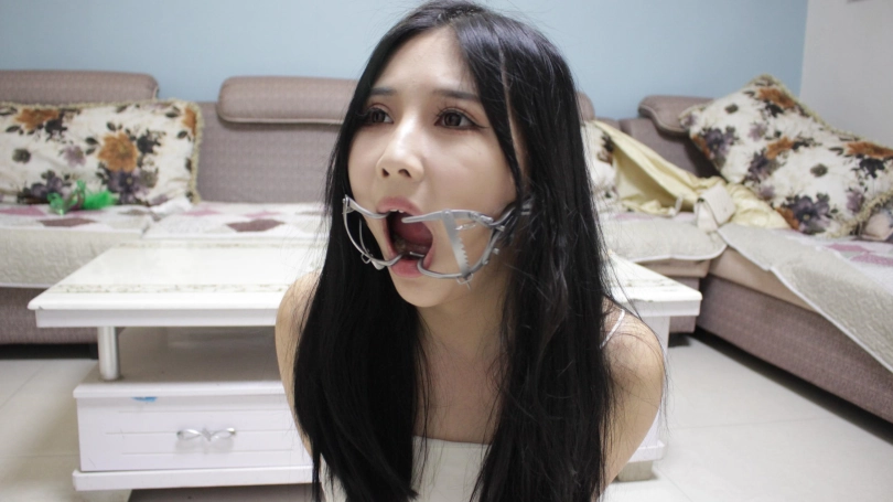 查看完整版本: 【子衿】小雅-镣铐驷马 扎带 开口器,开口器调到最大,模特最后谈感受说带上了嘴都动不了,只有任由口水不停的流