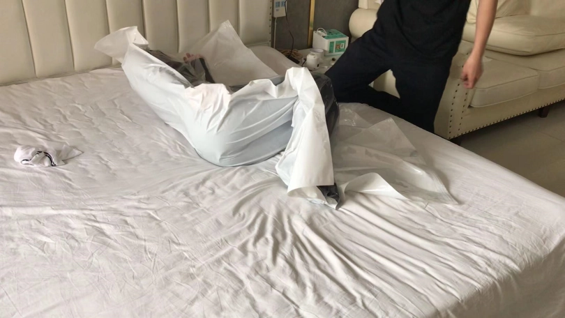 2、两个姿势的真空袋,小周越来越适应了。