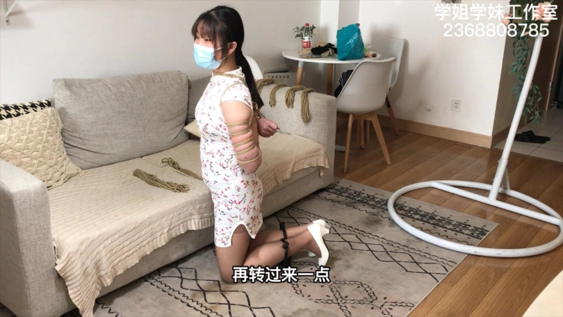 么么的学校在搞封闭管理,只有周末才可以来做兼职绳艺模特。这一次周五放学后,么么连校服都没来得及换,就直接来工作室拍摄了。先是穿着校服牛仔裤和白色阿迪贝壳头板鞋来一组五花驷马押解和日式悬吊,再换上我准备的旗袍黑丝高跟鞋来一组五花驷马和半吊。小女生没穿过旗袍和丝袜,担心走光的么么每换一个动作都在尖叫。这么青涩的模特一定不能放过,必须脱掉她的高跟鞋,狠狠的来一组TK。这一次拍摄么么还带来了一个晚上要跟她约饭的小姐妹,那当然不能放过宣传绳艺的好机会,三下五除二给一块绑了。