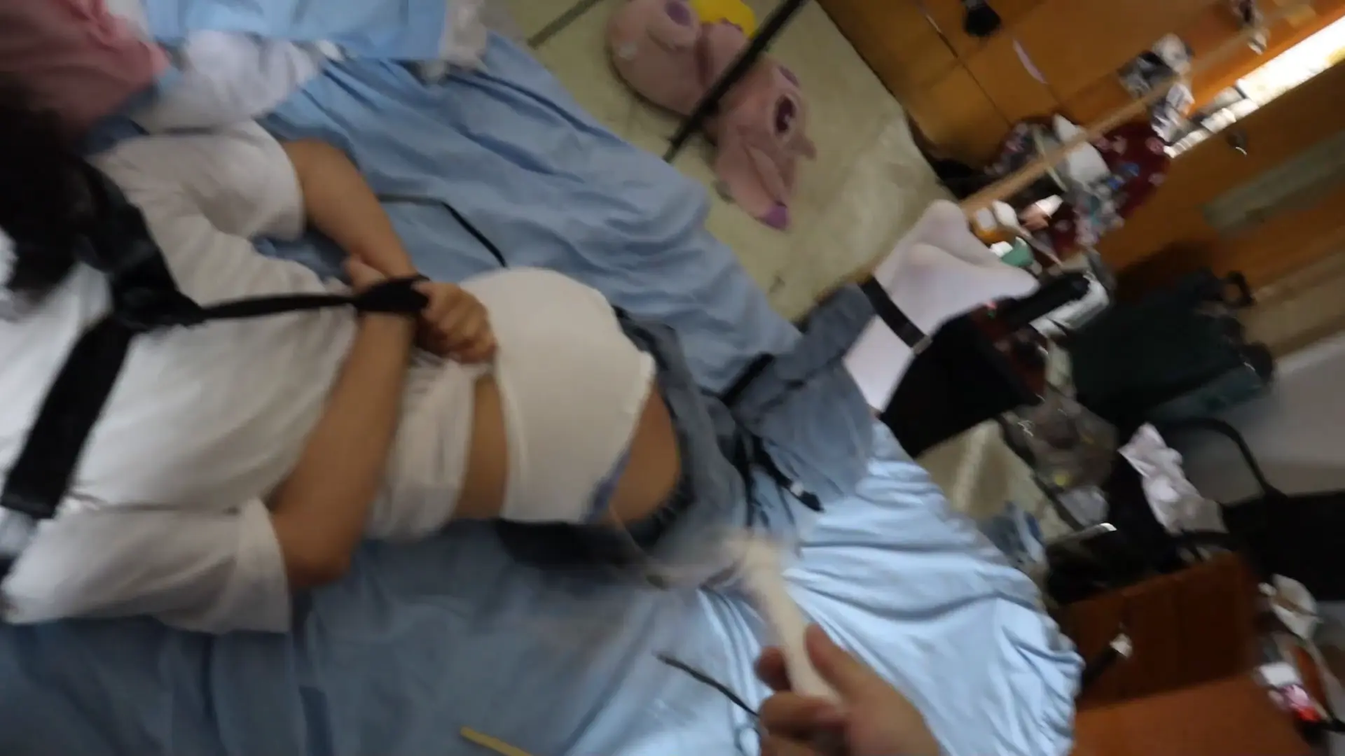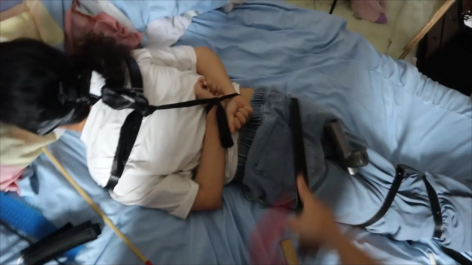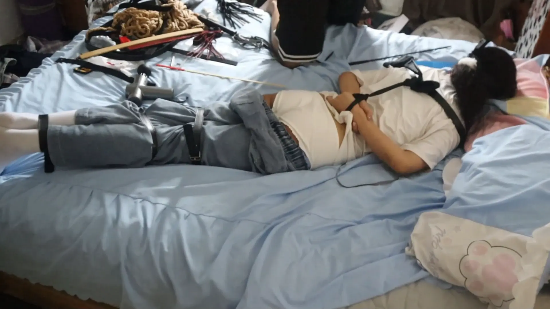 › 【荷仙少女】线下真实调教高挑白袜牛仔裤素人女孩小心翼翼来接受男主调教,一进门就见到几十种鞭子sp害怕又兴奋,皮带绑好身体手脚,纯记录双视,鞭打到后面痛苦挣扎直接大声哭泣喊道便报数边喊谢谢主人