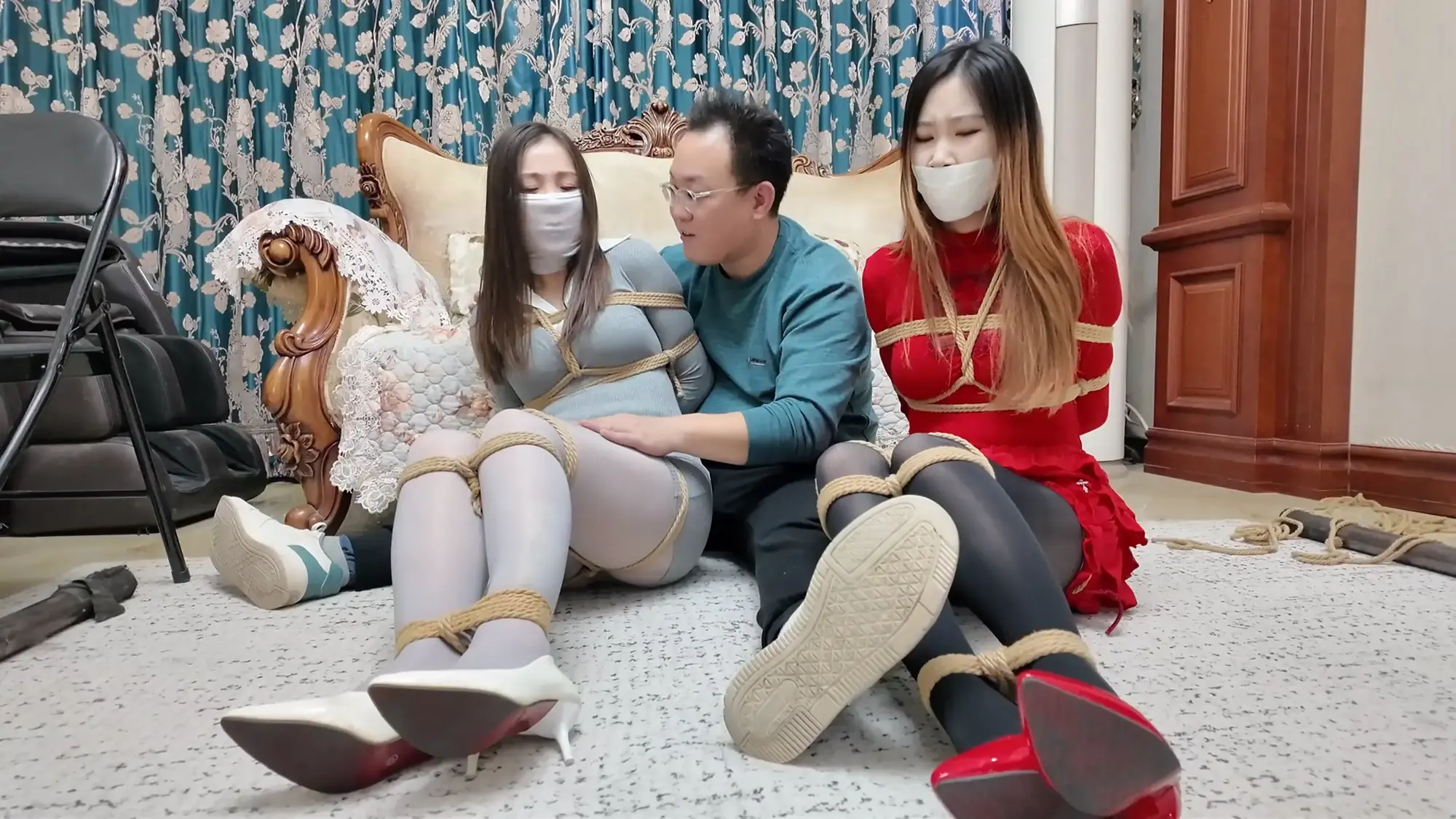 她们只能难过的呜呜抗议,羞耻的忍受着这一切...
