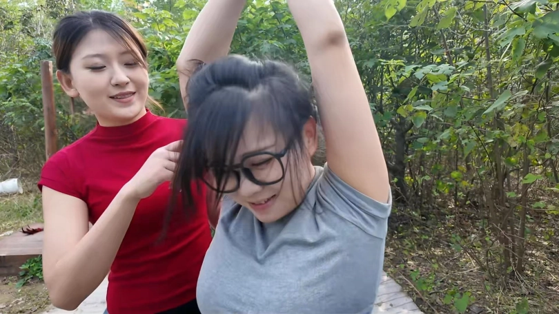 两个女孩在野外踏青,发现一处地上有好多TK工具,两个人就商量这个玩这个游戏,一个人挠另外一个,必须憋住,不许笑出声,输了接受惩罚,憋笑的表情还是很少见的,非常精彩的一部挠痒家SP