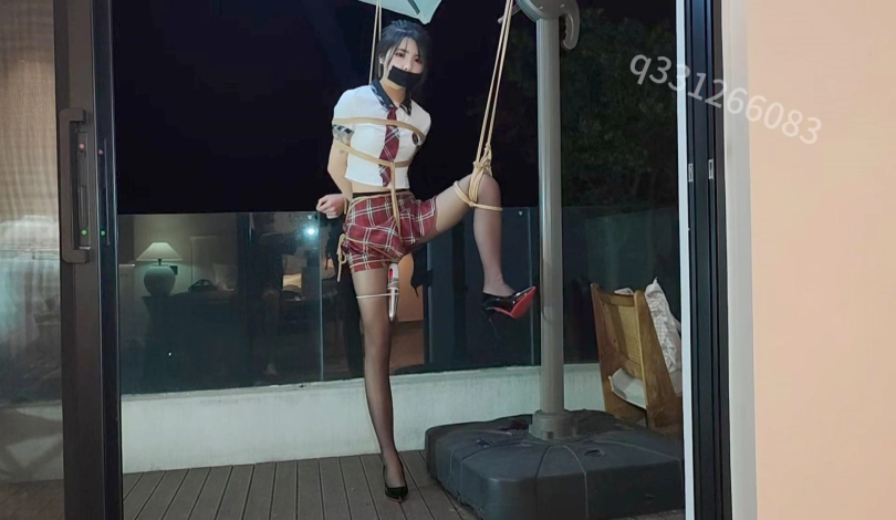 睡了几个小时的坏人醒来才突然想起,阳台还捆着一位如花似玉的美少女,,,于是兴致又上来了。。跑到车里拿来了早就已经准备好的jk,强制性的给她把衣服从新换上,接下来就是惨不忍睹的吊缚,开腿缚,坐缚,,,,永无止尽的强高,,,喉咙玩耍,还有最后的火力全开!!!