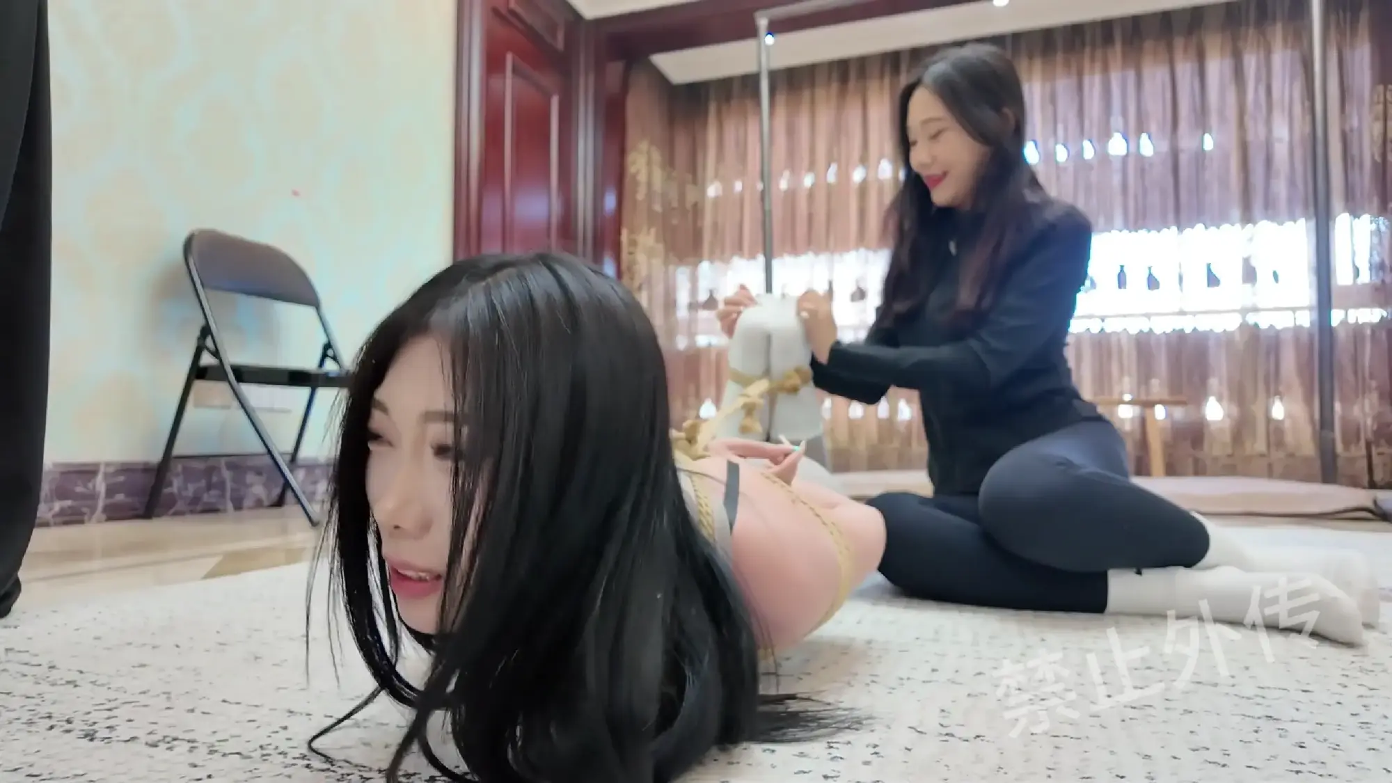 芷溪被很严厉的驷马捆绑起来后,被独自留在房间里面挣扎,无法逃脱。这时芷溪的闺蜜佳雯来找芷溪,发现被紧紧捆绑着的芷溪,急忙上去问发生了什么事。在得知事情的经过后,她先是取笑玩弄了芷溪一番,随后告诉她,自己想一起接受培训,为她报仇。于是,两人均被教练捆绑起来,在紧缚中全力寻找逃脱的机会。