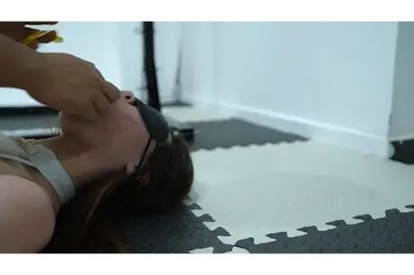 刚下班的女孩喜欢自己玩自缚,用手铐铐住自己之后在地下车库被坏人盯上,坏人突然出现迷晕了女孩并且绑架抓走,歹徒为了防止呼救用女生自己的臭袜子堵嘴,多层胶带封堵,最后用绳子加固捆绑直到女生一动不能动,哪料学生剧烈挣扎乱叫,无奈迷晕之后在加固各种颜色的胶带,多层胶带封嘴束缚,知道女孩乖乖听话