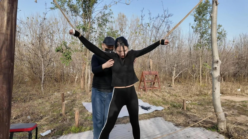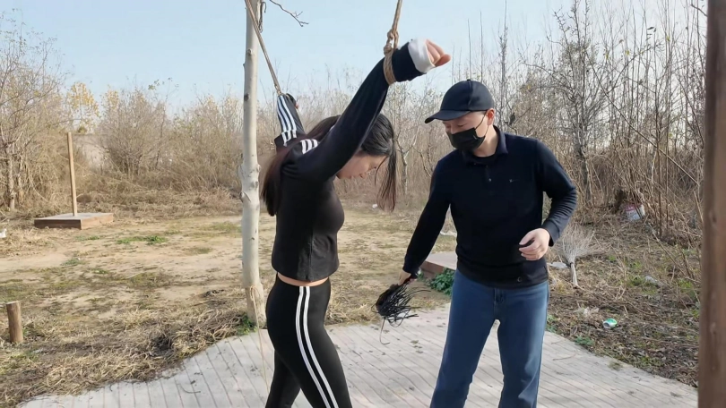 十一晨跑被歹徒抓住,进行一系列折磨挣扎,上集歹徒把十一绑到柱子上用棒棒震到失禁,抓起来带着湿身的裤子,大字捆绑,各种鞭打,TK,又把手脚绑到地上四根柱子上,成大字型,屁股朝上,用力打屁股,打完翻过来仍然是大字型,继续折磨....折磨之后扬长而去,留下十一在地上苦苦挣扎