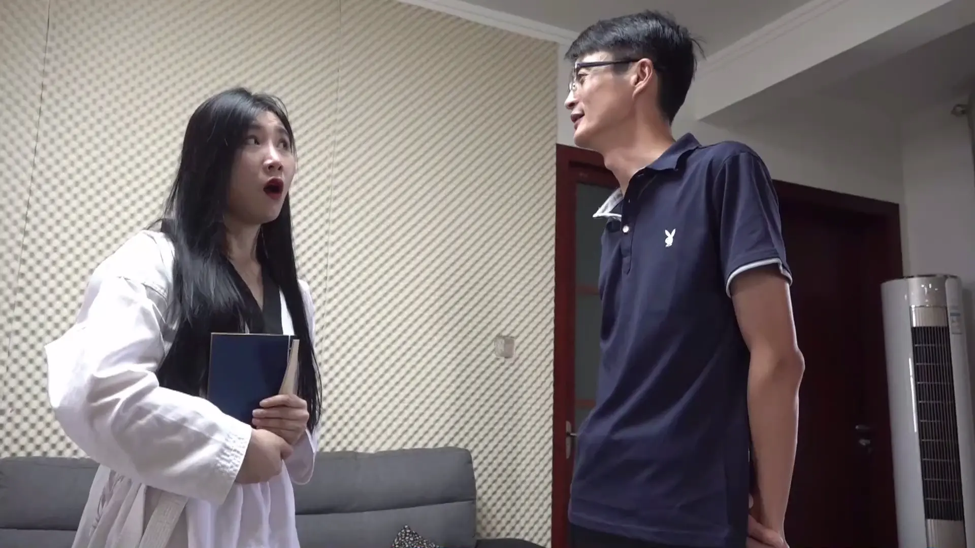 女主在房间内翻找,拿起一本书,说:“有种功法可以把尸体变成雕塑一样矗立不倒,前两位掌门死后就是这个样子,这么看来是他做的无疑了,我赶紧去报告。”这时男主偷偷来到女主身后点了女主的穴道(音效),女主 “哪个狗贼,快解开我的穴道!”,男主:“你在我的房间,却骂我狗贼”。女主心想:“我得赶紧喊出暗号让伙伴们过来。”喊:“乌拉巴哈,乌拉巴哈,乌拉巴哈”男主点了女主哑穴,女主保持张开嘴的姿势【嘴巴张大一点】男主:“行了别喊了,你的同伙都被我杀了,可惜没问出来谁派来的,只能由你告诉我了”女主一脸愤怒,男主解开女主的哑穴,女主:“你这个恶魔,我什么都不会说的,你干脆也杀了我吧。”男主:“这可由不得你。”男主点了女主的笑穴,正当女主想笑出声的时候男主立刻点了女主的哑穴,女主的笑声戛然而止,露出笑意,可惜笑不出声来,很难受,过了一会,男子解开女主的哑穴,女主立即大笑,边笑边骂【自由发挥,笑穴给正面镜头】男子开始动手动脚,女主丝毫无法反抗,男子就这样欣赏着美人的笑声,男主扶女主坐到地上,腿伸直,脚底直冲镜头,玩弄女主的脚来(脚底冲着镜头),挠脚心调戏着女主,边调戏边说:“怎么样呀,现在肯说了吗?”女主偷偷冲开了穴道(给一个用力的表情)抬脚踢走了男主。正当女主想踢出第二脚时,脚被男主抓住,男主挠了挠脚心,女主失去反抗能力,男主趁机又点中了女主的穴道,女主保持腿向上抬不能动。男主把女主腿放下,回到之前腿向前伸,脚底冲着镜头的姿势。男主:“你们修炼的功法都有一个弱点,就在脚底。”然后男主挠女主脚心(音效),同时逼问女主身份。女主一边笑一边骂男主,让他放开自己,几分钟后男主见女主不肯说,于是说:“我知道脚底有个穴道,点中以后比挠脚心还要痒十倍。”男主点中女主脚底穴道,女主又开始笑起来,男主:“不想难受就快招了吧。”女主一边笑一边定着,特写脚底和脸,一会儿后女主笑晕了过去(之前是坐着,这时候躺倒)