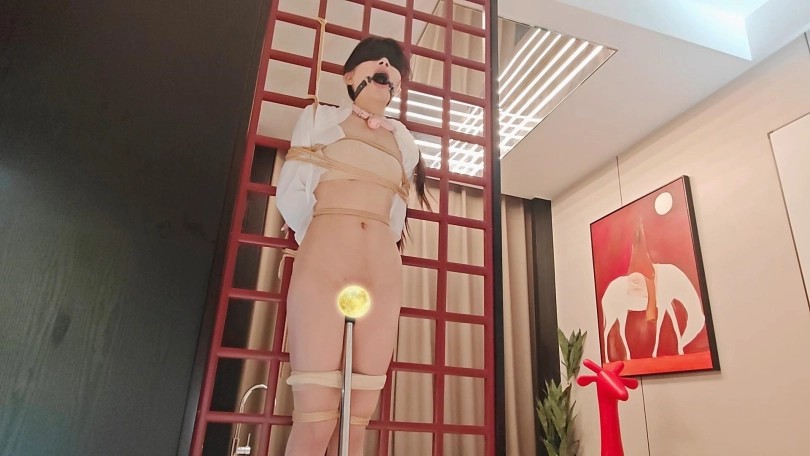 女m被剪掉裙子和衣服过后只剩下一层薄薄的肉丝和内裤,然后继续放上玩具大宝贝固定捆绑在酒店的架子上面。然后离开,因为她希望独自享受快乐,出去洗个脚回来发现她已经尿了一地,容光焕发的s继续开始他的调教,舔舔更健康,振动假阳具固定插入,深度喉咙,驷马后入。