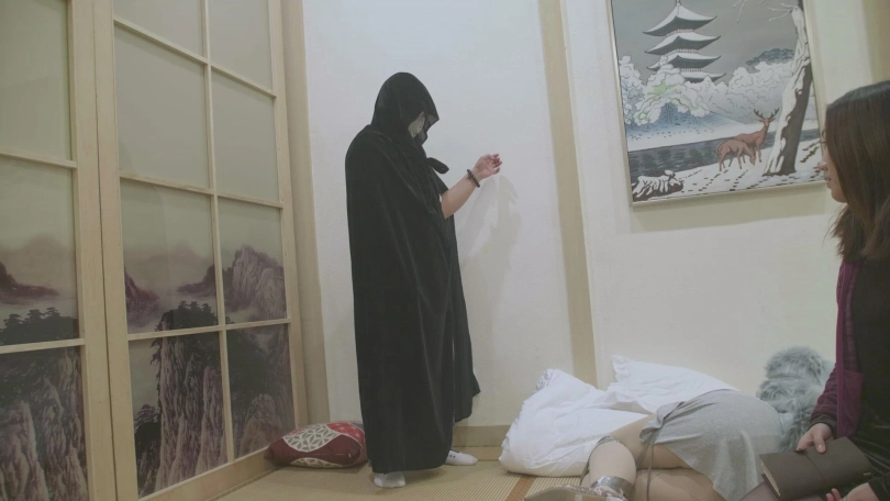 这时惩罚之神出现了,把黑丝女1的丈夫封印到墙里,以此威胁黑丝女1与肉丝女2决斗。