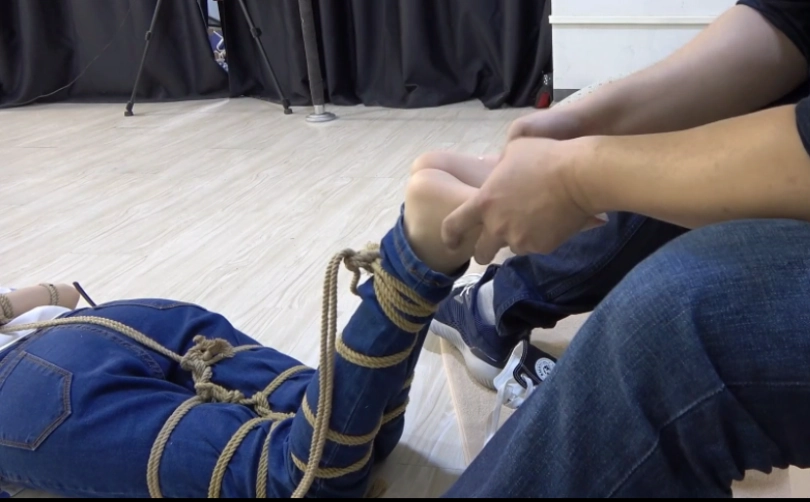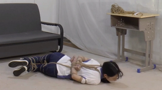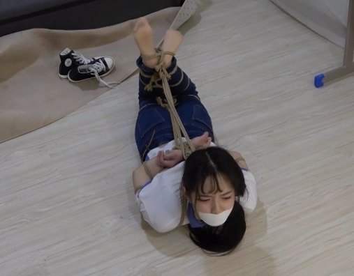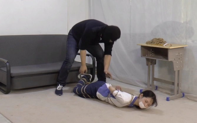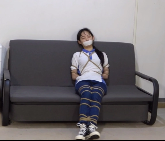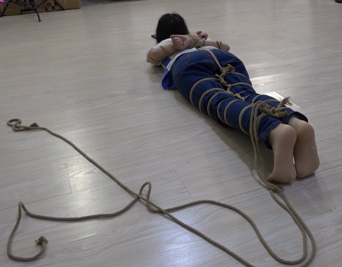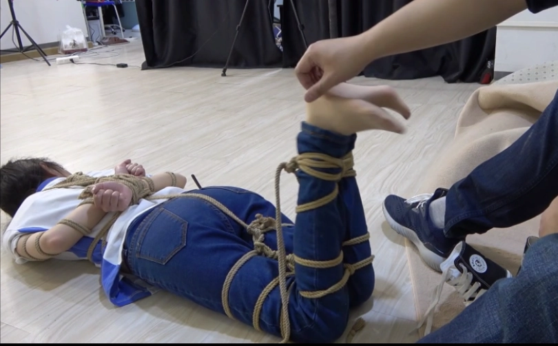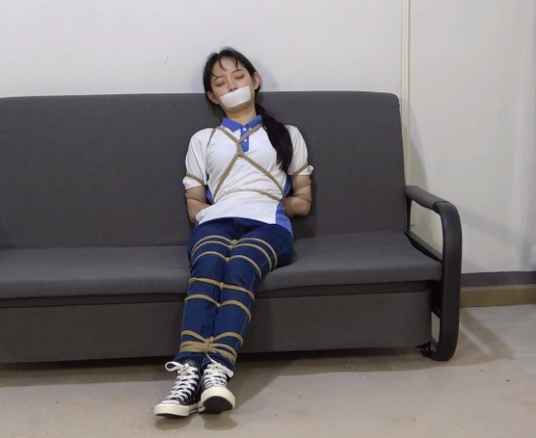 清醒过来的小A发现自己已经被捆绑起来了,全身上下都被捆的紧紧的。