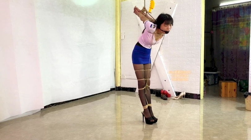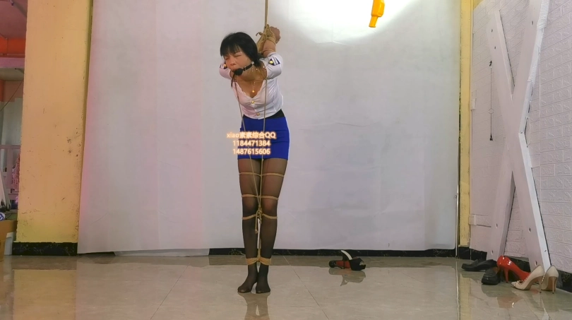 空姐黑丝素素被严厉欧式捆绑,5cm口球堵嘴并且大腿的绳子连着脖子再连着手,垫了脚尖吧,脚会酸,不垫脚尖吧,手就疼,进退两难的素素就这样。叫着,一直重复着,受不了了。受不了受不了。