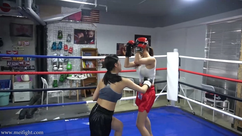 This time, Lexin and Agan have a kickboxing match. The match were not scripted, they were free to fight. Obviously, they were all holding their heads tightly. They can only try to attack each other‘s abdomen, kick each other‘s thighs and waist...