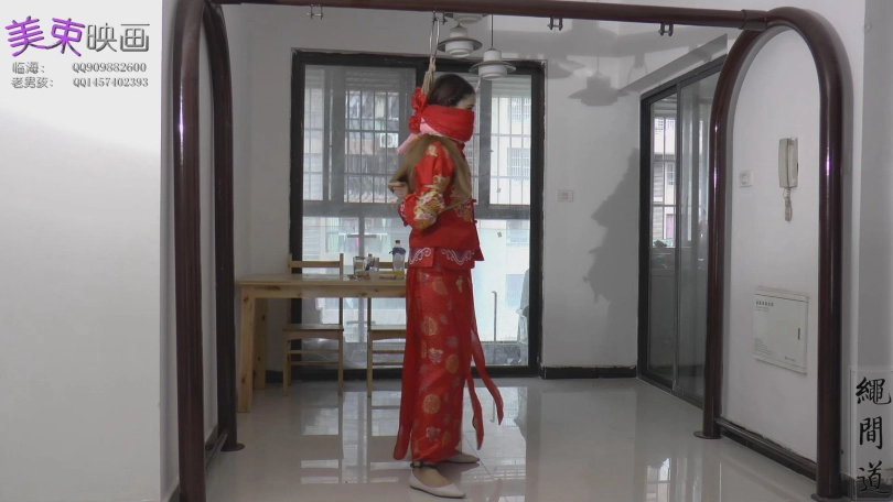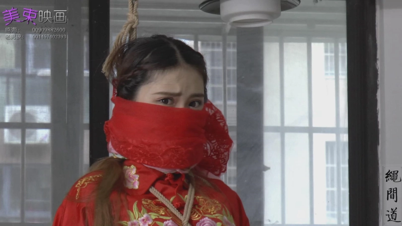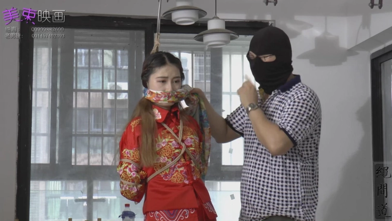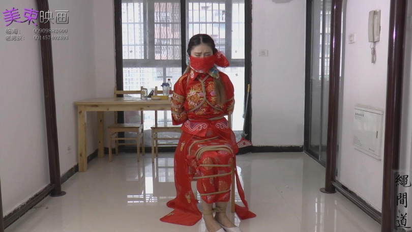 新娘坐在床上等待新郎,可惜,新郎被绑架了,绑架者威胁新娘听话,为防止新娘逃跑,手铐,黑色重镣全部用上,来到客厅,该上正题了,那么五花,丝巾堵嘴,多层丝巾堵嘴,恩,感觉看点满满,希望大家喜欢了。