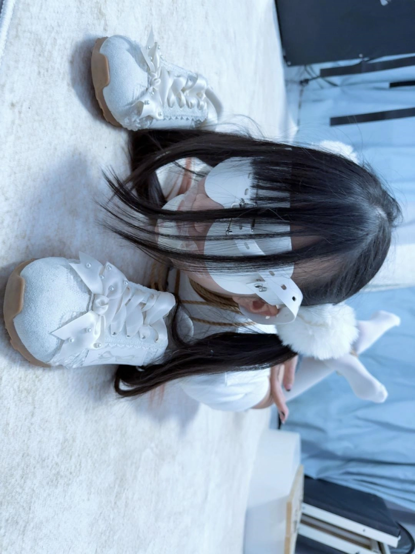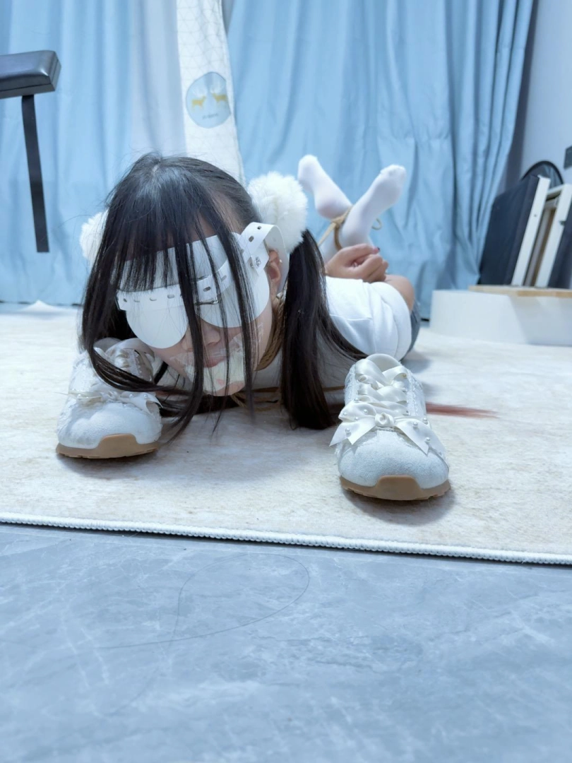 准备工作:首先把鞋子脱下,然后把原味小白袜脱下整整齐齐的摆在鞋子边。换上白丝过膝袜。