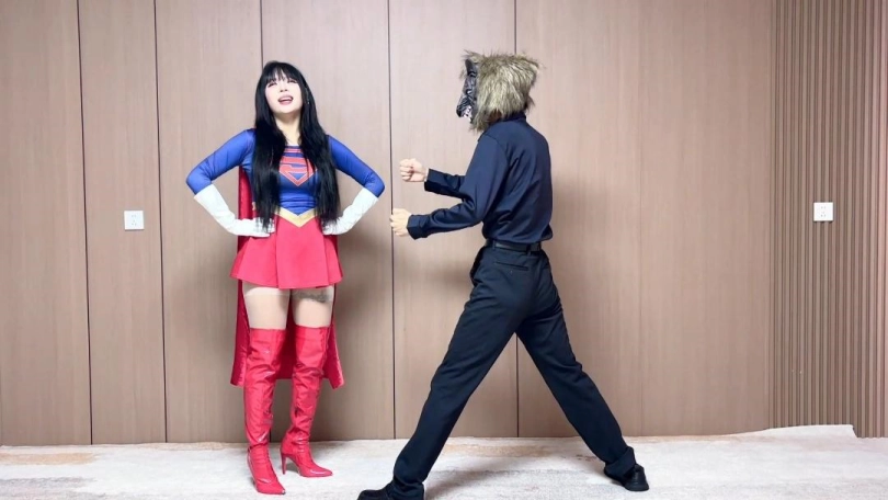 女超人(白洁饰演)为了给闺蜜美少女战士(上一集,柳洋饰演)报仇,找到了宇宙人。女超人被宇宙人戴着的氪石拳套克制,失去了飞行的力量,被不停折磨(打伤胳膊,脱靴,踢腿,掰腿,击腹,踩脚)。女超人被折磨依然寻找战机,终于用眼睛发射镭射光线把宇宙人射成灰。