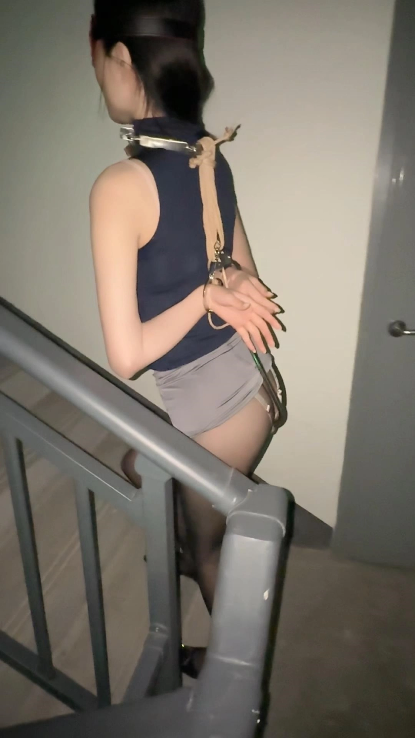 作为一个体长腿长的美女来说,形体训练是必不可少的,走路起来要挺凶抬头,这样才有气质,于是这么冷的天也是让她出来接受培训了,肛勾与颈部的项圈相连,必须要挺胸不然就会勾到.....