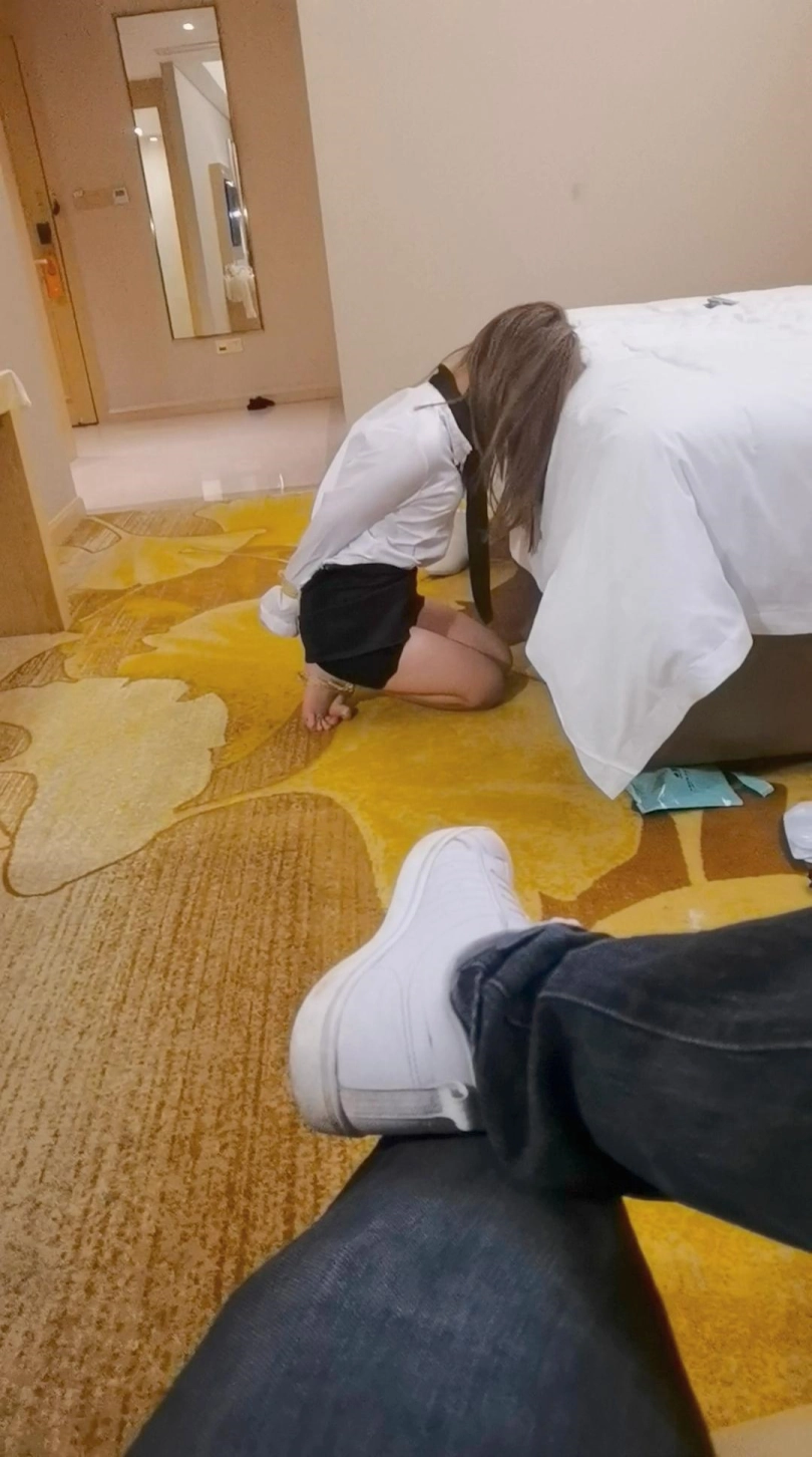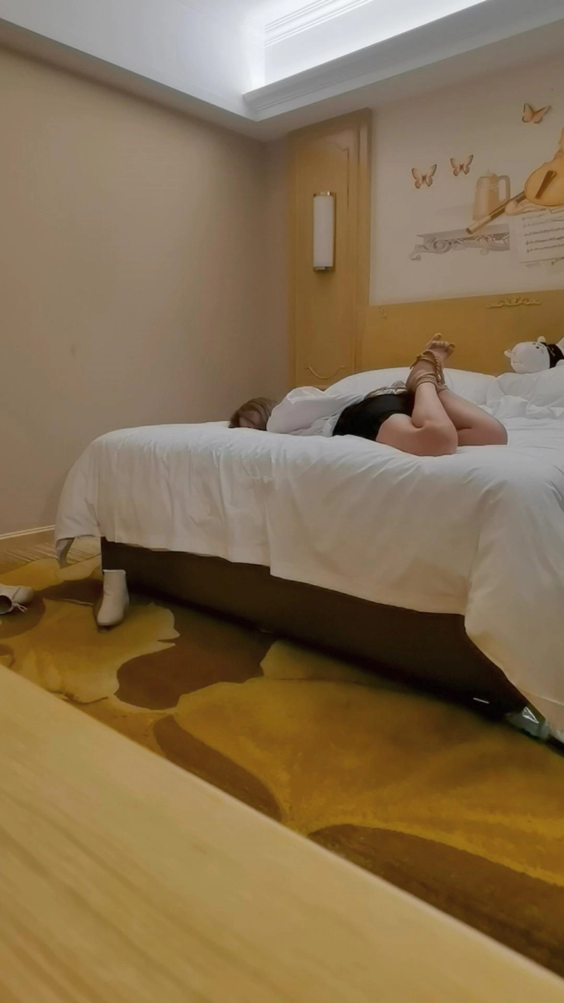 丫头最近是长本事了,在学驾照的过程中认识了一个一起学车的幼师小姐姐。一起约起吃饭的时候因为几句玩笑话谈到了捆绑,加上微信之后继续聊天开玩笑,没过几天就搞定了一次酒店之约,不过这个幼师小姐姐真的以为只是开玩笑,却不知道会来真的!!!一进门就被强行捆绑了,扔到床上之后不停的喊救命,吓得哭得之厉害,一直叫妈妈救命!!!!真的是把人兴奋到了极点,只有用挠脚心来缓和她的惧怕,又哭又笑的她最终用尽全身力气摔下床,挪到身边把我深深的咬了一口,这一口可不轻,为了惩罚她,只能委屈她在这里多呆一会了!!!