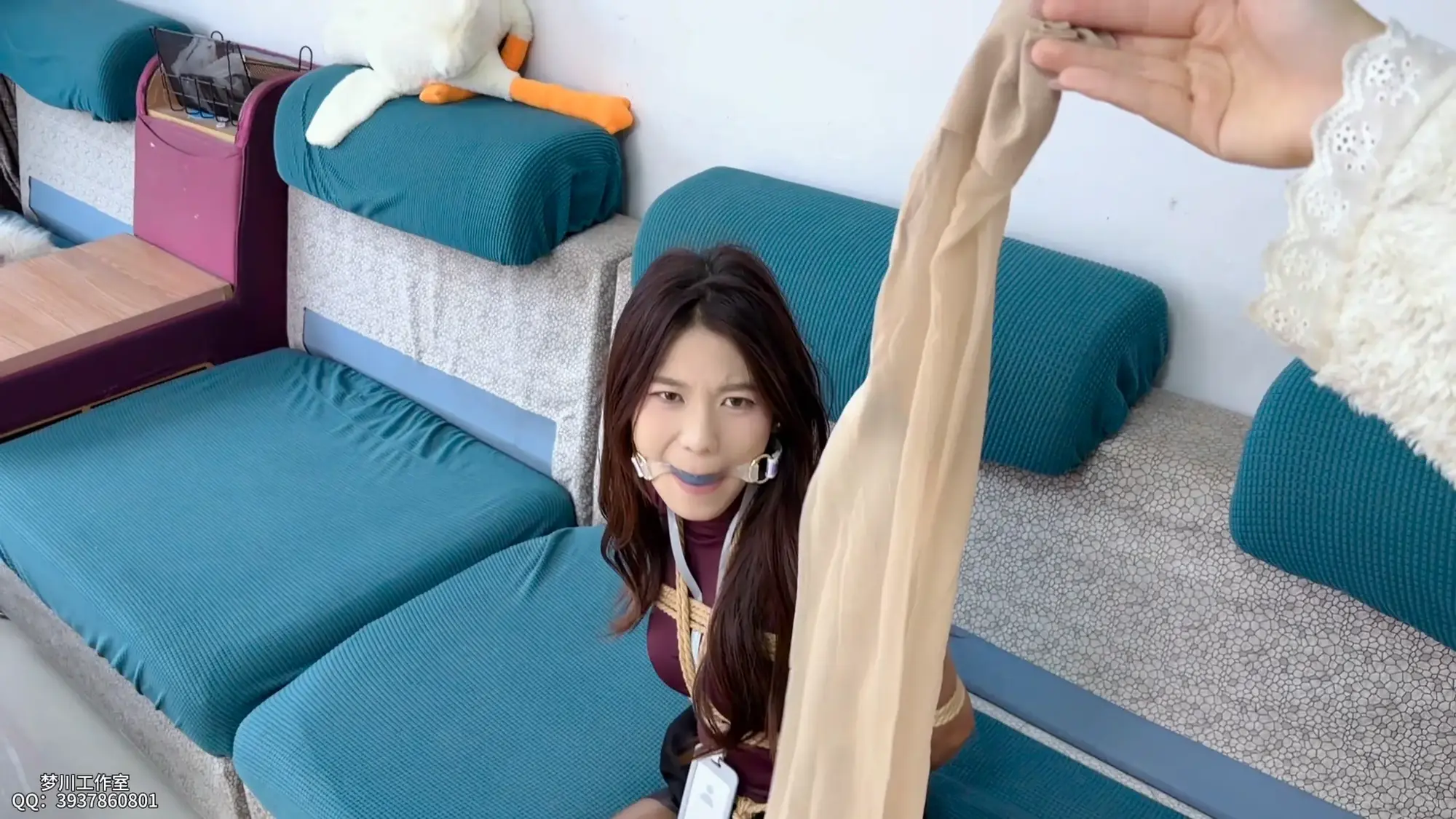 丝袜束缚相比绳子,痛苦有所减轻,