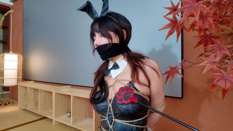 【波丝姬】龟甲缚绑架拍打震动刺激黑丝兔女郎