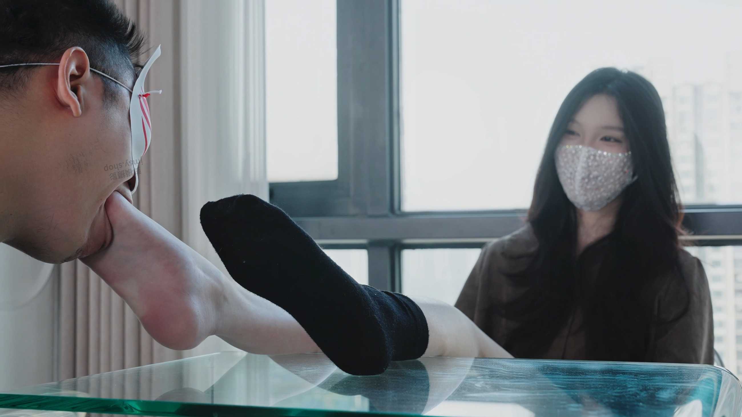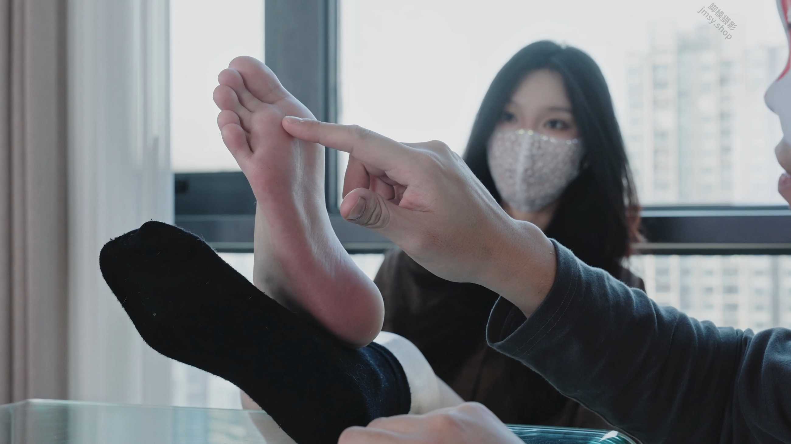 回到工作室后我们先拍虫虫小姐姐,对她的靴子袜子和脚做了真实的气味评测,是香臭的。然后对她的脚做口味评测。