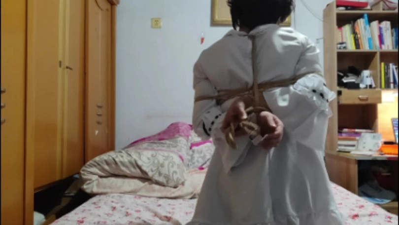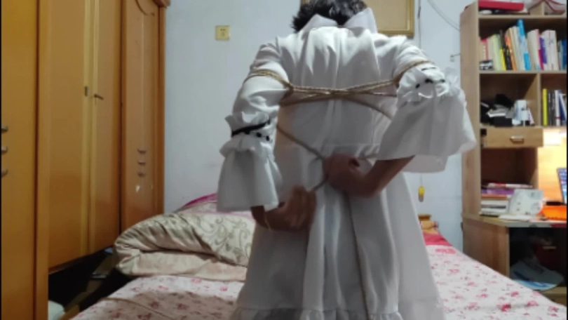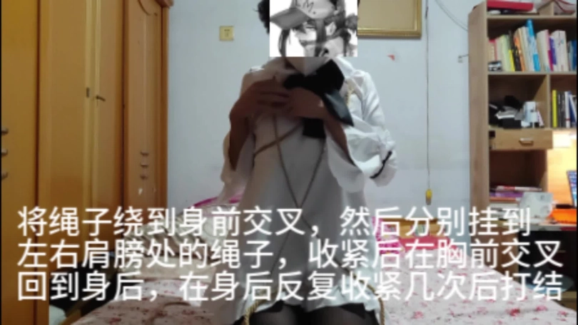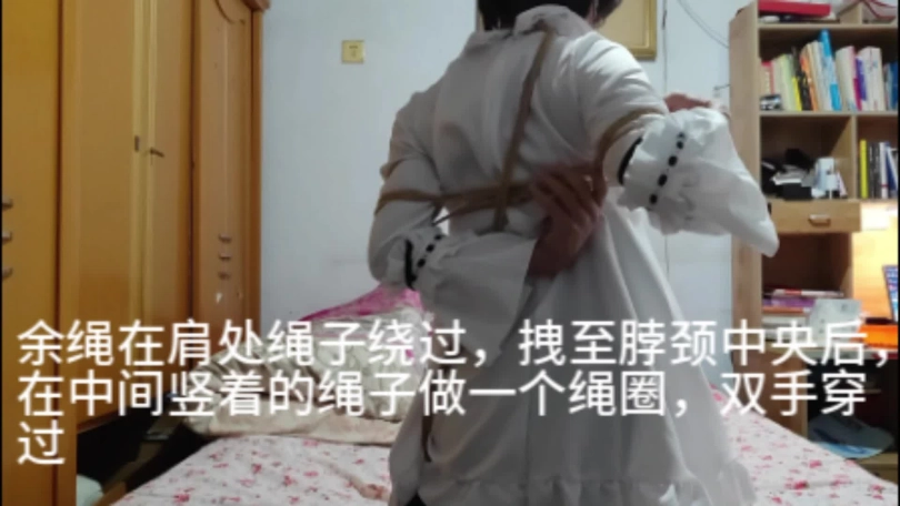 这种自缚是结合日式自缚的拘束大臂活动和中式五花绕圈圈的结果,既起到手臂、手腕和胸前的束缚作用,又能在十分钟内完成。