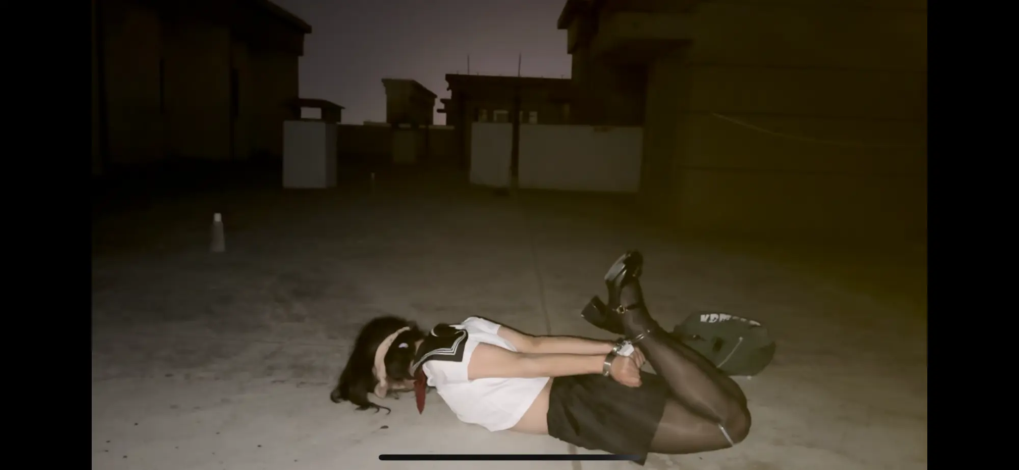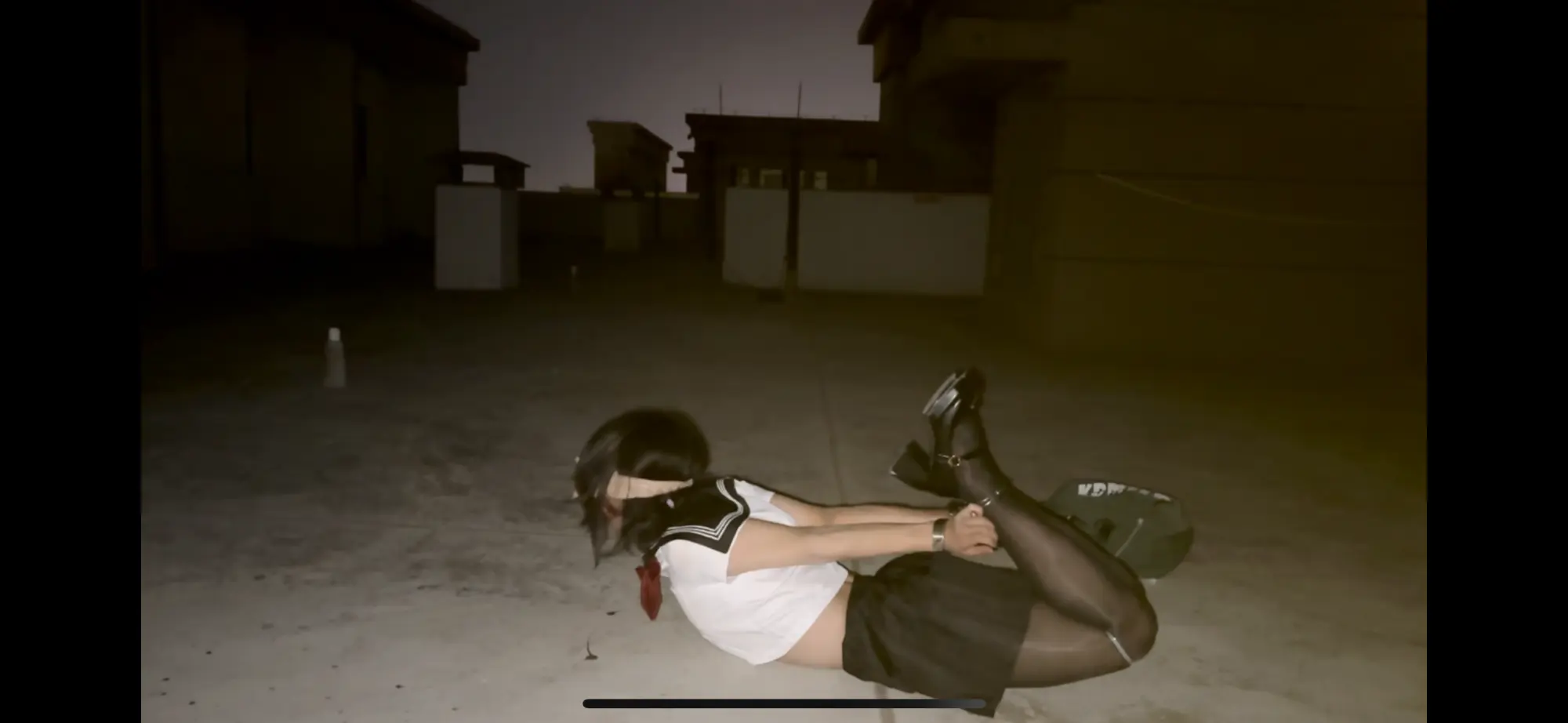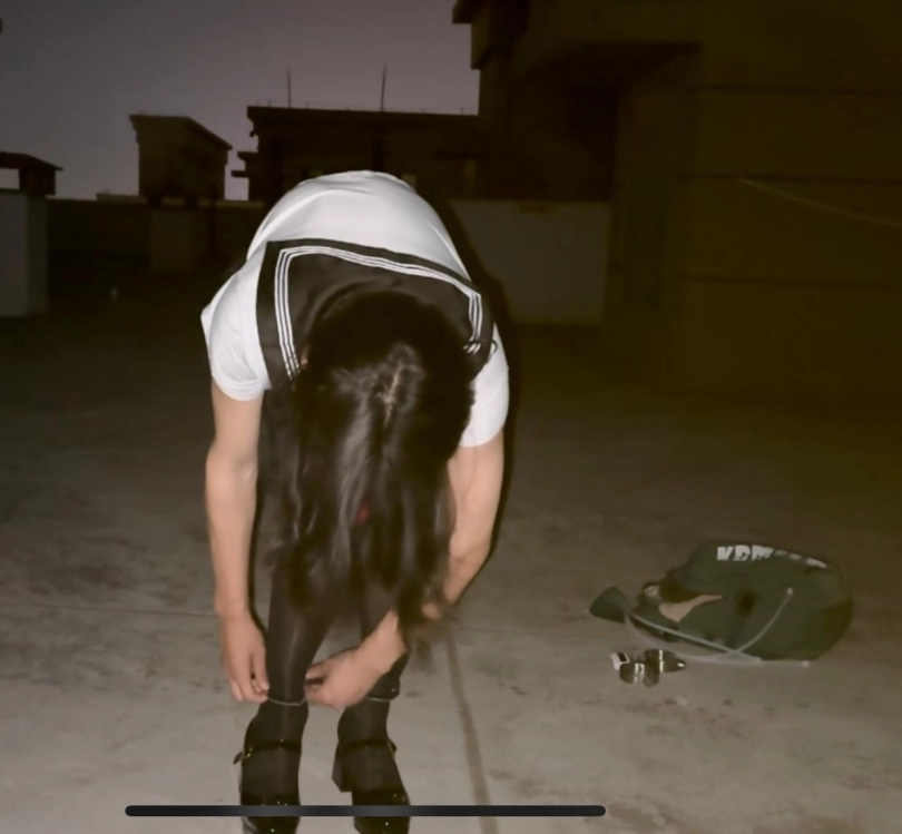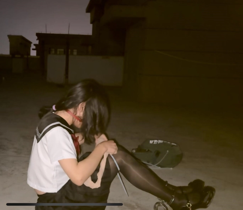 【柚里】痛苦的天台手脚铐驷马定时锁自缚!伪娘JK套裙➕黑丝玛丽珍高跟鞋