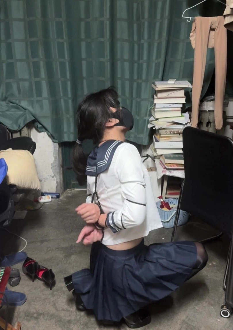 本来想录一个简单的一根绳子的五花后手自缚,再加上定时锁,没想到第一个视频的时候活结就解不开了,而且高跟鞋又特别挤脚,幸好找到了桌子上的小刀才免于一死......后面不信邪,我又重新拍了一次,结果在绑好之后活结还是不开,第一次的小刀我又忘记随手扔到哪里了,以为这次肯定没事的,吓的我把眼罩弄掉,终于摸到了舍友桌子上的一把小刀,还割了两次绳子才把手腕解开…