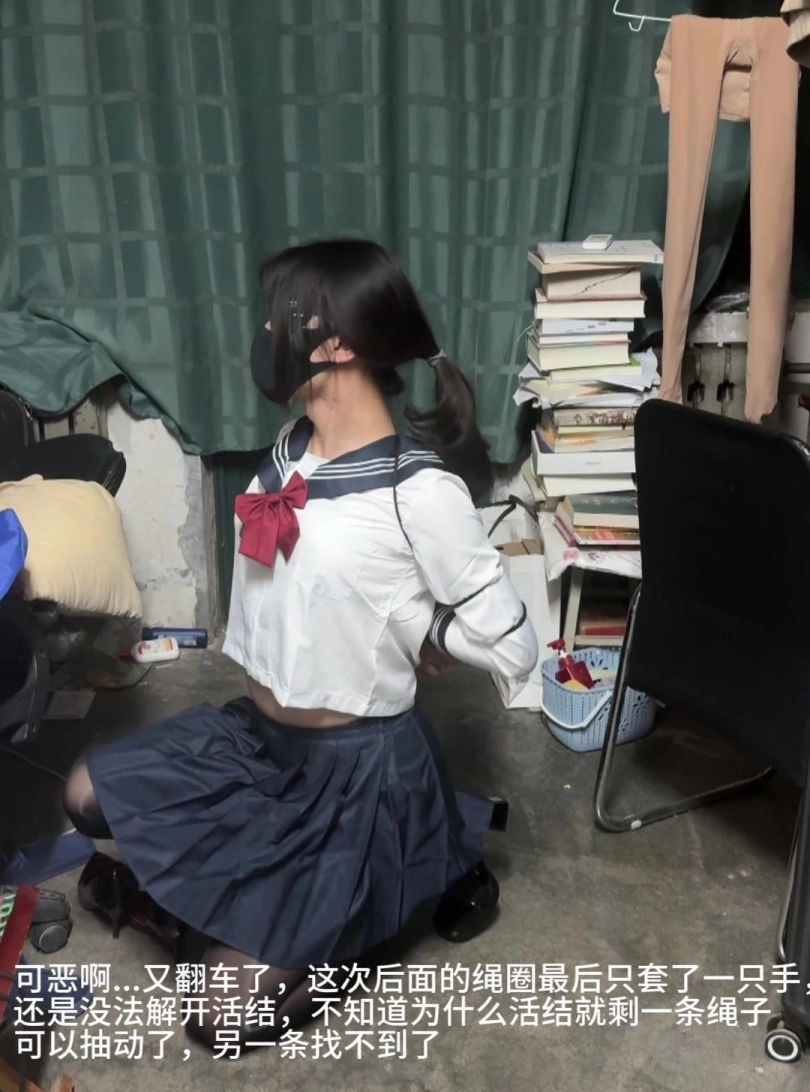 【柚里】五花自缚教学翻车,还好宿舍摸到小刀了不然真的绝望水手服+马油黑丝+侧空高跟