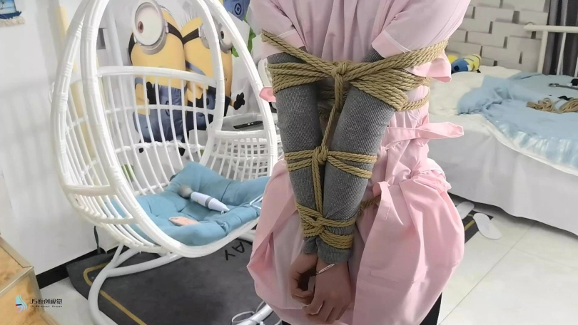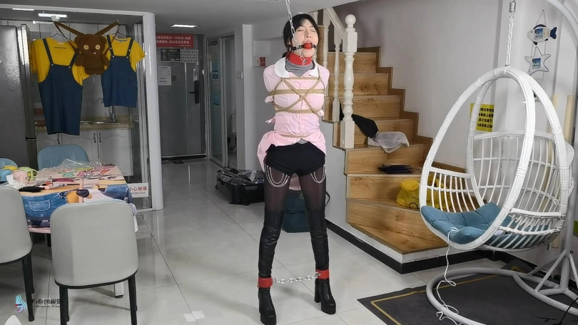 女护士上班没有按规定穿着平底鞋,医生只是说了她两句,护士却不耐烦的怼了回去。于是医生决定好好教训下这个脾气暴躁的护士妹妹。护士正在照镜子,男人从后面突然冲过来捂住了她的嘴巴。当画面再次亮起时,女护士已经被欧式直臂捆了起来。她的嘴巴被塞着一个大红口球。脖子上被戴上了强直抬头的脖套,脖套上链接着铁链拴在上方。护士的脚上也被戴上了皮质脚铐。护士因为穿着高跟长靴,长时间的站立放置,让她的双脚很是难受。这时男人走了过来,开始用皮鞭抽打着护士,又拿电动棒棒对着护士的下面就是一顿疯狂输出。护士被着强烈的快感刺激的发出享受的呻吟声音。这时男人准备对护士换个方式调焦。