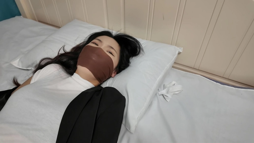 小韩是个爱运动的女生、这天在家整理着自己的骑马装备,床上摆着棉纶丝袜,白色口罩和黑色西服,床边立着马靴,她把装备摆放在床上,换掉脚上的短肉丝,穿上马靴,带上白色口罩,这时候有人敲门,小韩下意识的问:谁呀,门口回复:快递,小韩出去开门,打开房门闻到一股清香,晕倒在地...