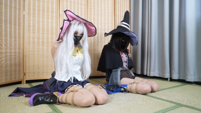 嗷嗷+小0两个美腿大美女同时cos,从穿丝袜细致捆绑,