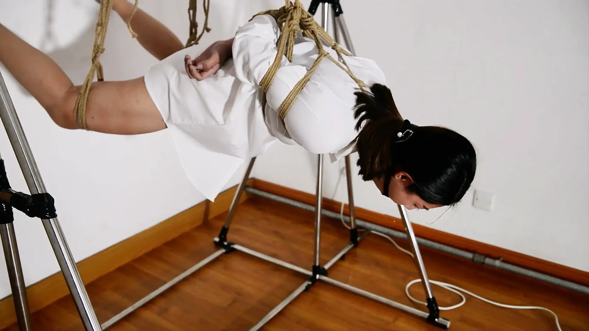 铁架组装后随时随地满足悬吊之乐,仅有的小亮点重制时也都剪辑进去了,算是完整版本,整个过程是中规中矩的日式悬吊,也可作为小教学片,先用三个点完成悬吊,然后看个人喜好选择脚腕和腰部是否再加绳。