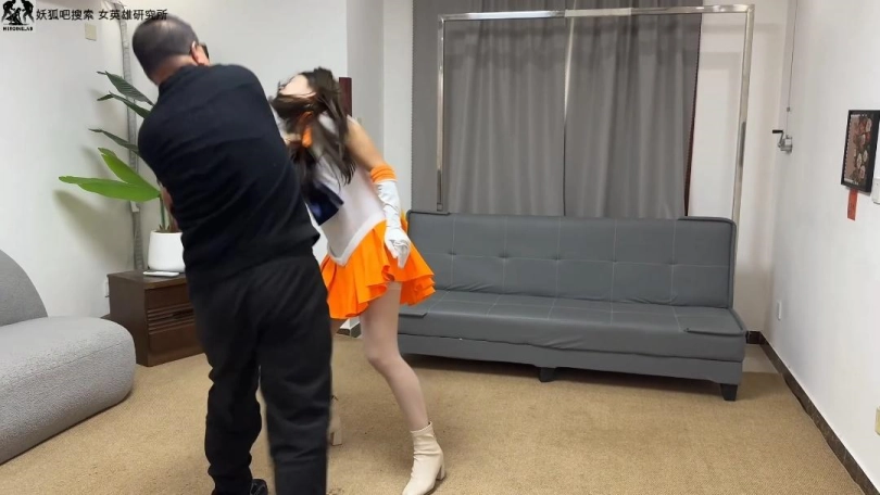 美少女战士抓捕小偷,几下就打败了小偷,小偷被女战士踩住。女战士大意之下被小偷偷袭击中裆部,女侠痛苦不堪,被打倒,勒脖子。女侠肘击挣脱后打败小偷,却因裆部受伤无法追击。