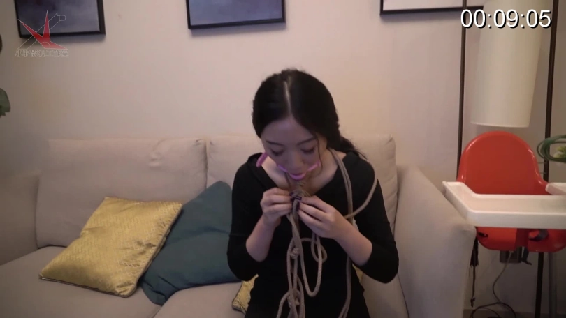 之前拍摄的时候她说这些日式捆绑她两三下就能脱困了,我说不可能的,她不信,于是就有个这个视频。另外,口球也是她自己要戴上去的。